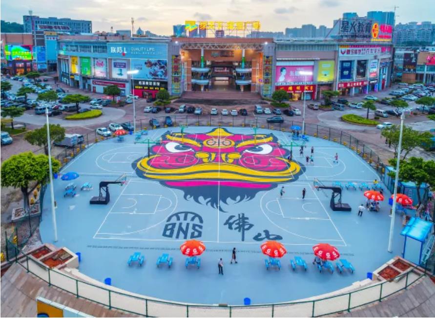 位于桂城街道家天下·家居广场3000平方米的BNS篮球公园,从高空俯瞰篮球公园中央的“醒狮”涂鸦,结合篮球运动与佛山传统文化格外显眼,成为独特的网红地标。1个标准比赛场地6个标准半场的配备足以满足众多市民的运动需求。