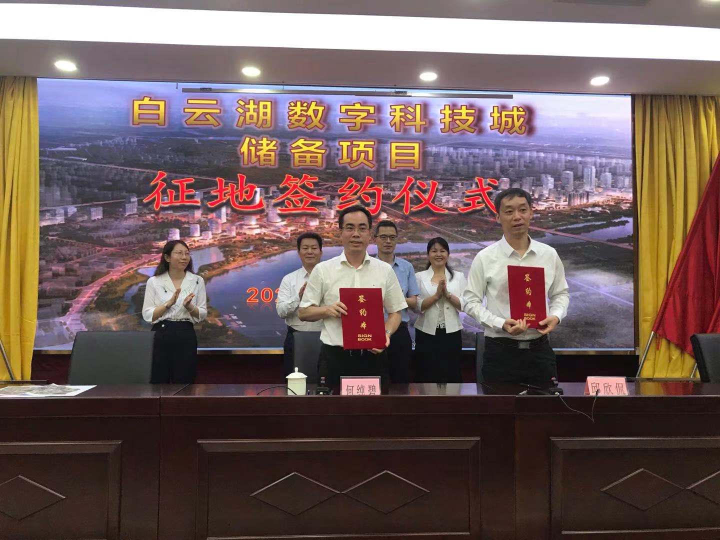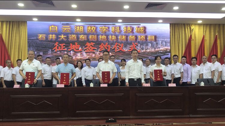 7月28日,白云湖数字科技城储备用地项目签约仪式广州市白云区石门街道办事处举行。白云区土发中心与石门街签订工作委托协议,石门街与红星经济联合社、朝阳经济联合社、鸦岗经济联合社等土地权属单位签订了三个土地储备项目共约1500亩土地的征收协议,为白云湖数字科技城成片连片开发添砖加瓦。