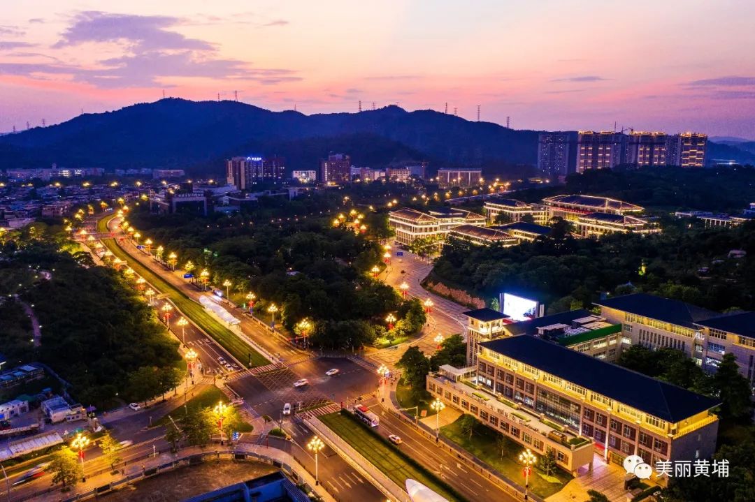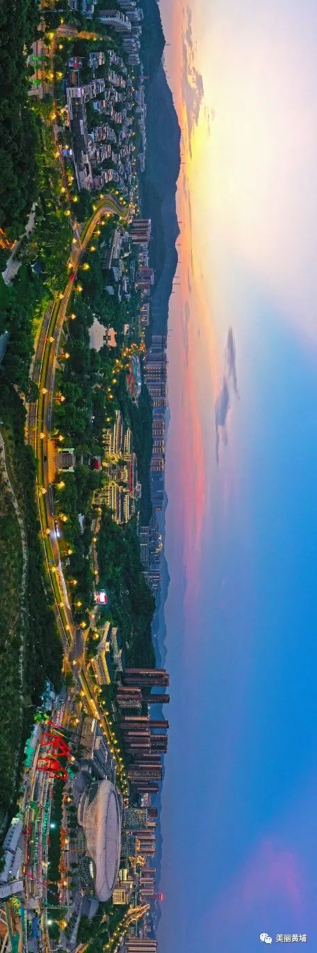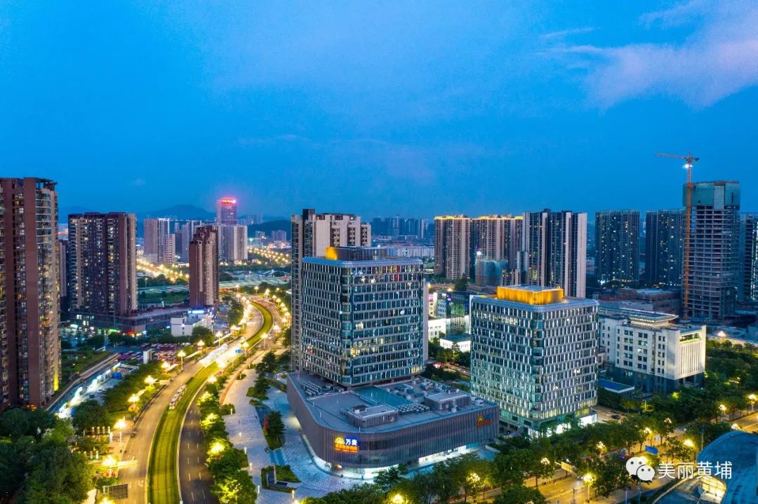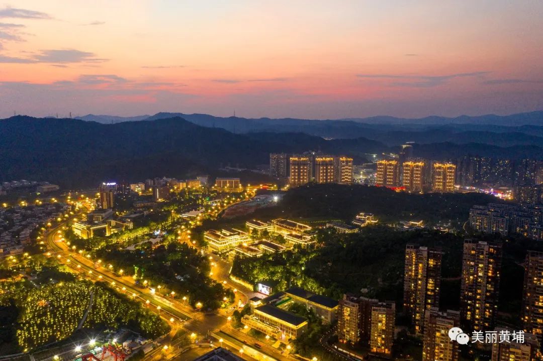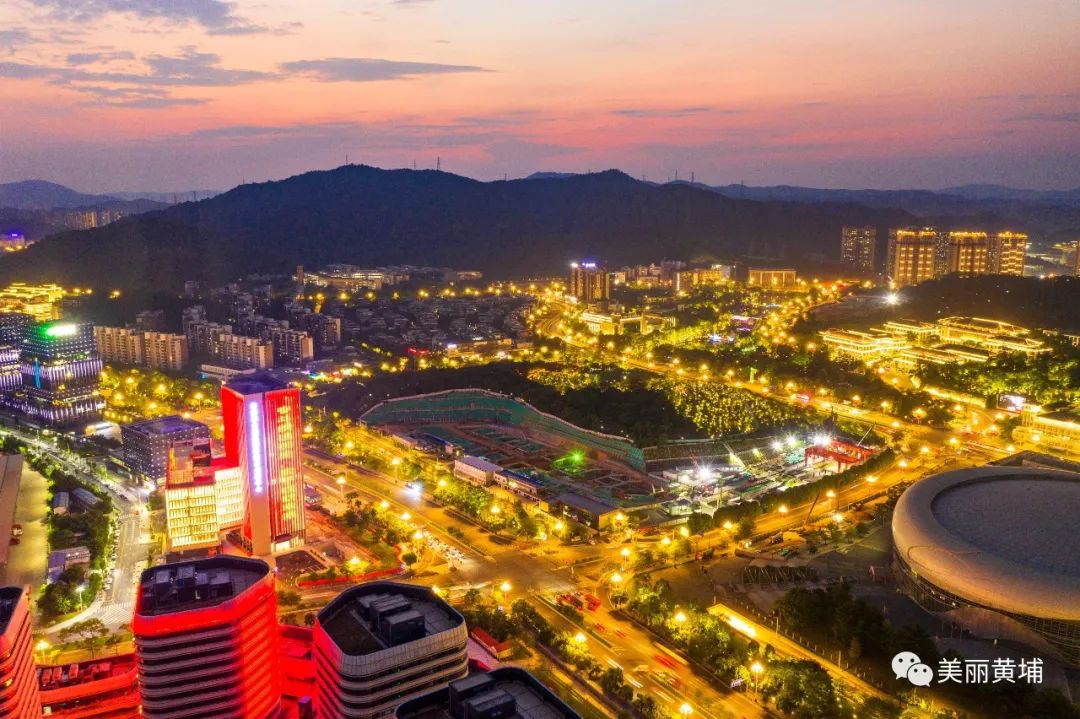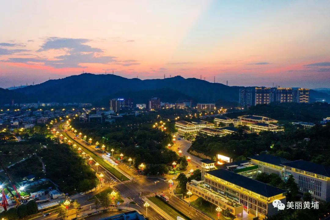 黄埔行政服务中心(区府)、市民公园一带,在晚霞映照下分外美丽,等到建设中的地铁工地和合景摩方完工,将是另一番景象: