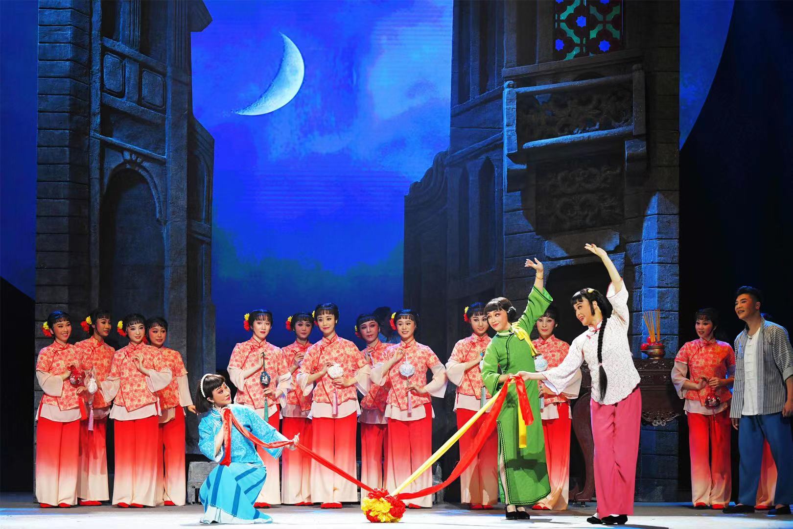 此外,该剧还把“鸡公榄”“拜七姐”等岭南特色民俗呈现在舞台上,全剧以广东音乐《雨打芭蕉》作为主旋律贯穿全剧,舞美则再现了广州骑楼街,通过细腻的岭南元素全方位向观众展现浓郁的岭南风情。最终,新版粤剧《三家巷》呈现出清新、明快,同时又兼具浪漫、抒情、悲壮、恢弘、激荡的特质。