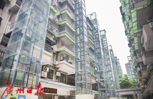 金花街道一排已安装电梯的旧楼,方便了居民出行。