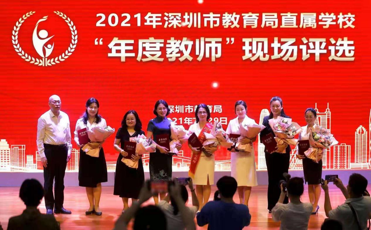 7月29日下午,2021年深圳市教育局直属学校“年度教师”现场评选活动在华强高职专业学院举行。经历两个多小时的角逐,深圳市育新学校杨宏英老师从7位候选人中脱颖而出,获得2021年市直属学校“年度教师”荣誉,她将代表市直属学校参加全市的“年度教师”总决赛。至此,深圳10个区(新区)和市直属学校的“年度教师”已全部产生,11名教师将晋级深圳市“年度教师”总决赛,最终评选出5名深圳市基础教育系统“年度教师”。深圳市委教育工委副书记、深圳市教育局党组成员杨平出席评选活动并为获奖教师颁奖。