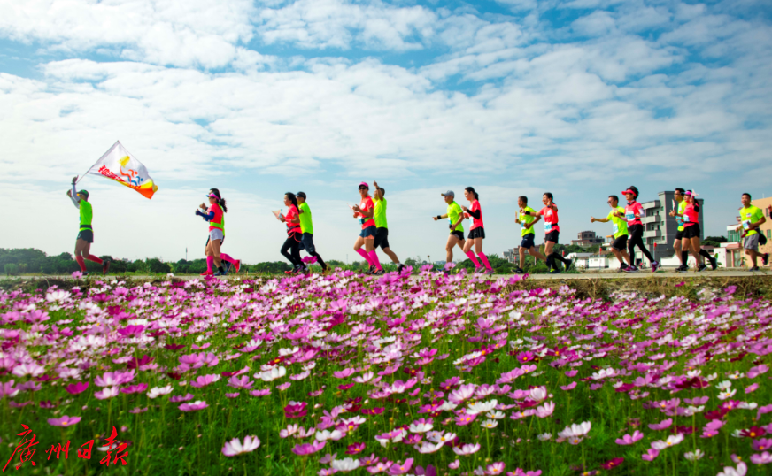 跑步爱好者在白云区钟落潭镇云溪湾乡村旅游景区参加马拉松。