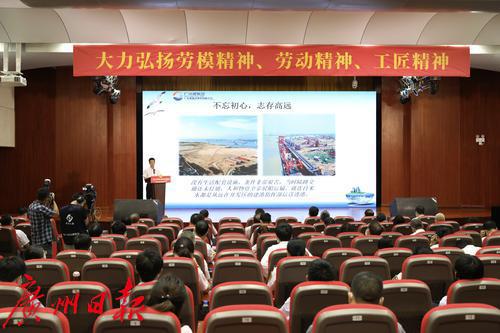 7月30日上午,“中国梦·劳动美—永远跟党走 奋进新征程”广东省百场劳模工匠进企业宣讲活动启动仪式在广州举办。 启动仪式由广东省总工会主办、广州港集团承办。全国劳模、全国优秀党务工作者、十九大代表、广东省总工会兼职副主席程祖彬,“时代楷模”东深供水工程建设者群体代表、省五一劳动奖状单位广东粤港供水有限公司水质管理经理佟立辉,广东省劳模、南粤工匠、广州港新沙港务有限公司高级技师陈学文三位劳模工匠代表与职工们分享了他们的工作故事。
