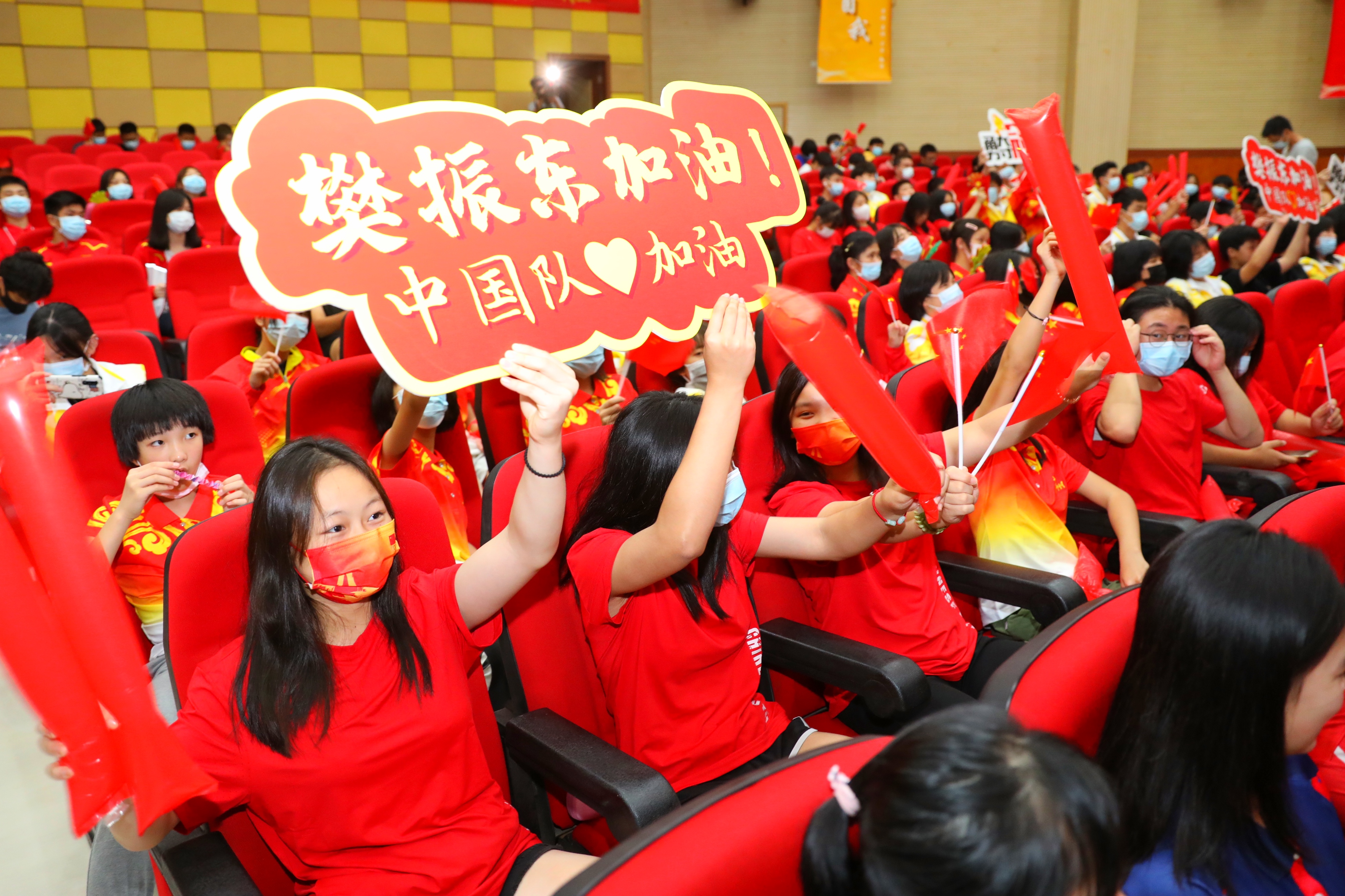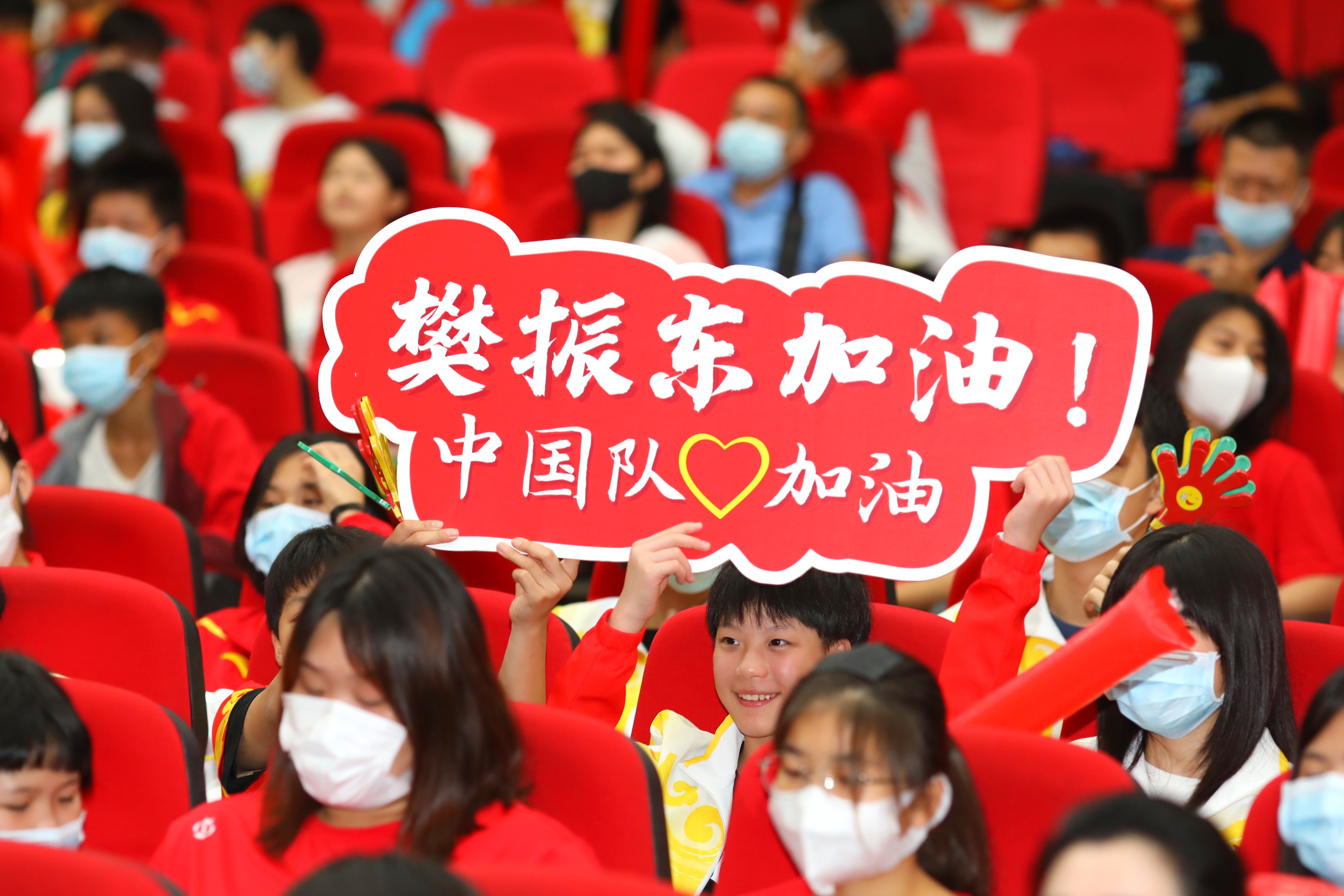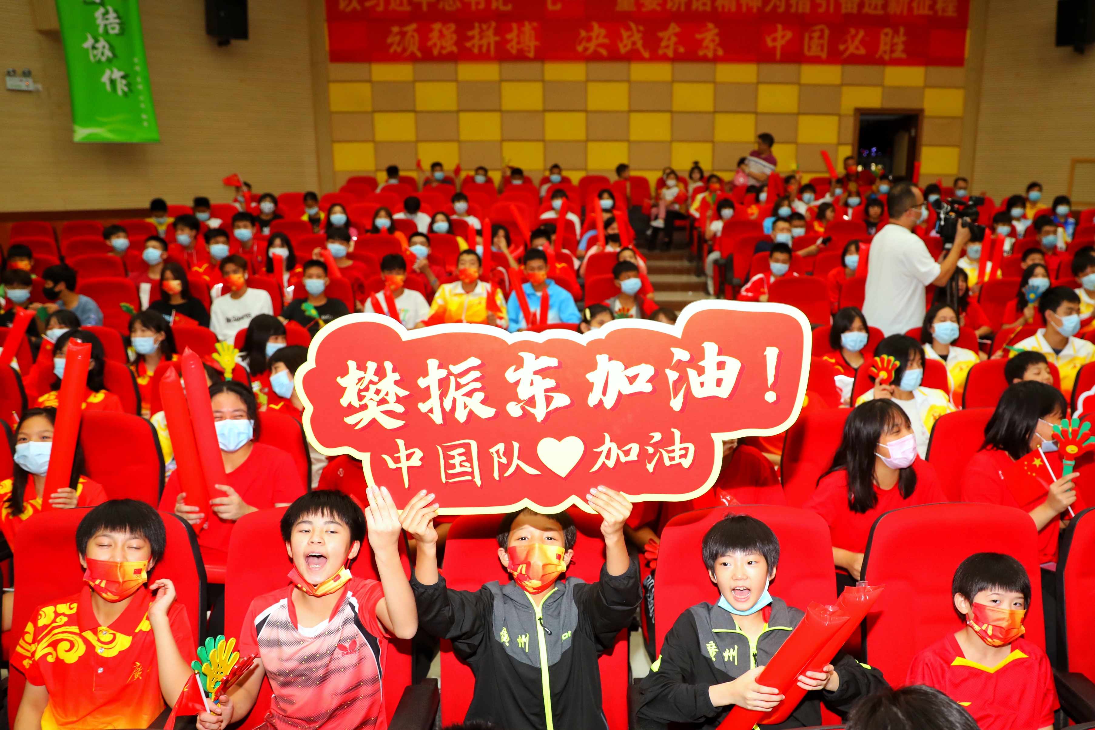 2020东京奥运会乒乓球男单决赛今晚举行,来自广州的国乒头号种子樊振东冲击男单金牌。在樊振东的母校广州体育职业技术学院,乒乓球队的教练和队员集体观看决赛转播,一起为樊振东加油,其中包括当年樊振东的两位恩师张敏、罗绍伦。