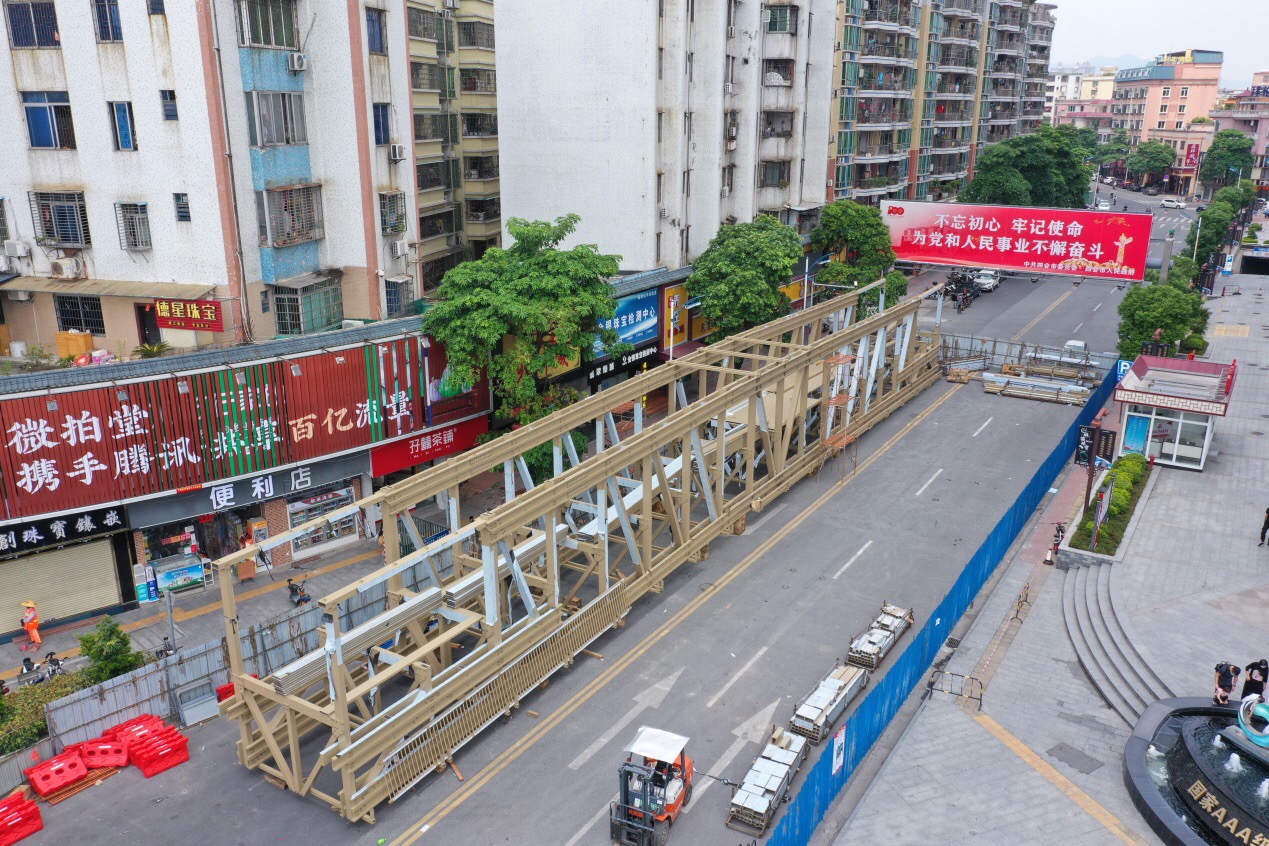 天光墟天桥建设过程中也遇到了不少困难和挑战,铝之桥项目经理王志菲透露,由于天桥体量庞大,零部件数量众多,本可在工厂内拼装,但拼装后的主桥高度接近6米,超出道路运输高度,为了解决这一难题,铝之桥灵活运用了“工厂+现场”联合预制的生产模式,所有部件运输到现场后,实施现场拼装,两周内便可装配好一座主桥。
