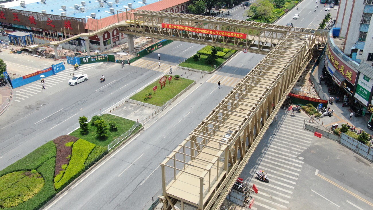 天光墟天桥是四会市政府规划中的首座铝合金天桥,待其建成后将大大提高四会大道主干道的通行速度,同时保障周边群众及从业人员安全过街营商。目前该项目正在进行梯道、景观绿化、照明等辅助设施的安装和收尾工作,相信市民很快就可以到天光墟实地“探桥”了。
