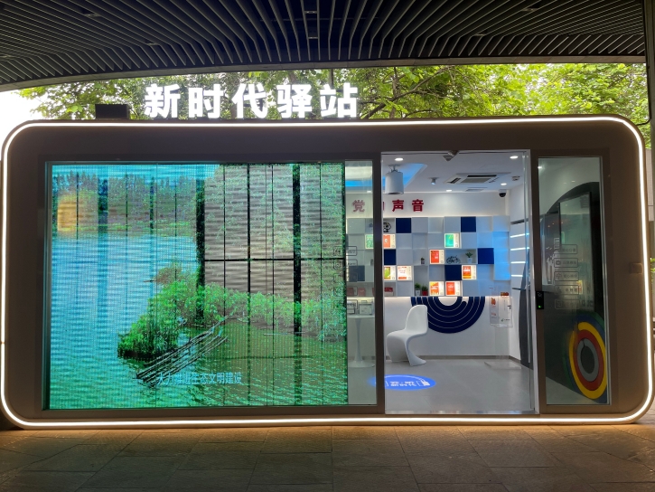 “结合中国共产党成立100周年,我们将红色基因融入到新时代驿站的设计当中,‘红船’造型象征着中国共产党百年历经风浪,不断扬帆前行,奋进新时代。”项目相关负责人介绍。
