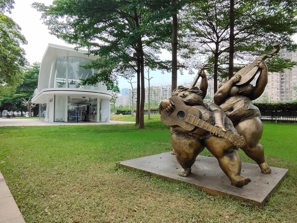 除了驿站建筑本身,驿站外面两侧的草地上,还摆放了著名雕塑家许鸿飞五件代表作品,吸引了很多市民游客驻足。