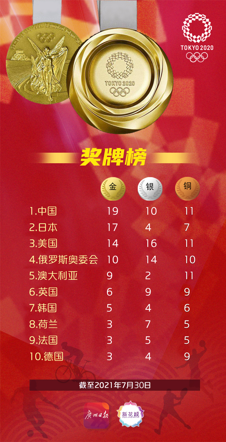 中国代表团在游泳、蹦床、羽毛球、乒乓球、女子八人单桨、射击等项目均有所斩获,