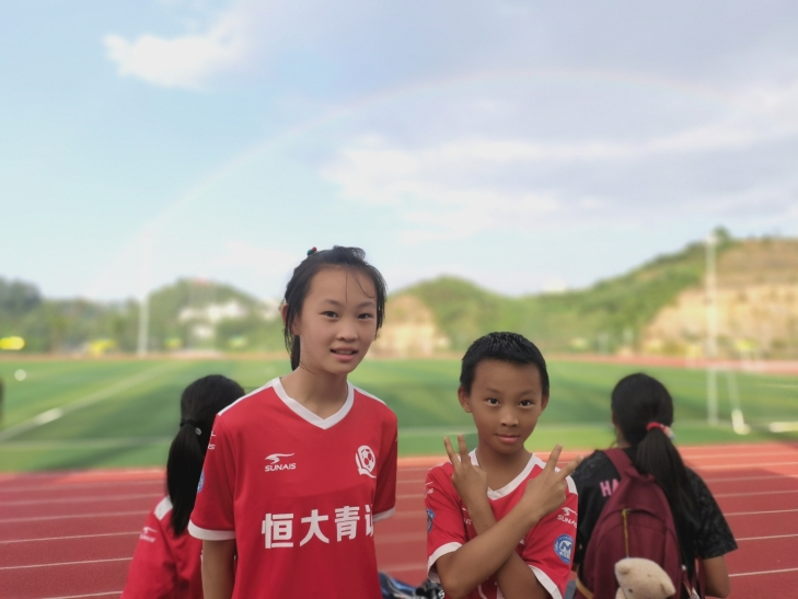 训练期间,天气忽得由烈日变为瓢泼大雨,而不变的是足球场上奔跑的身影,已分不清湿透衣衫的是汗水还是雨水,但能看清的是脸上依然洋溢着的笑意。他们身上有稚气,更有志气。