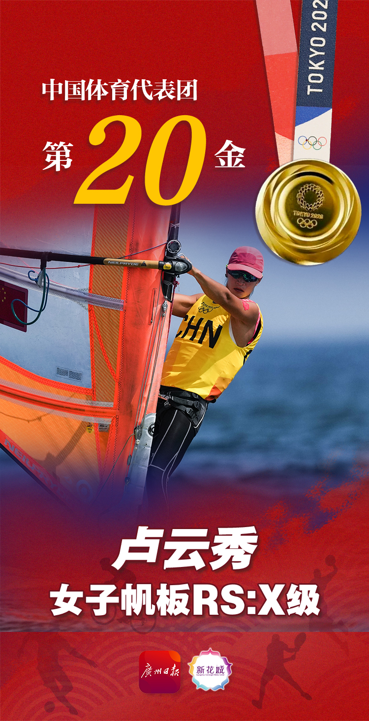 31日进行的东京奥运会帆船女子帆板RS:X级决赛中,中国选手卢云秀获得金牌,这也是中国代表团在本届奥运会上第20枚金牌!该比赛场地是距东京100多公里的神奈川县藤泽市的江之岛游艇码头海域。