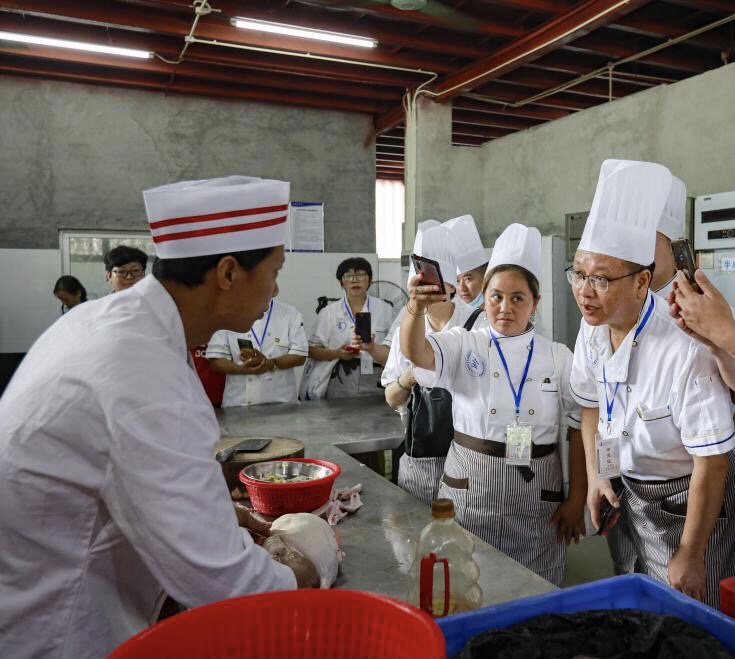 “我们都是来自黔南州职业院校烹饪专业的老师,很高兴有机会能来白云学习经典粤菜的制作工艺,希望能通过培训了解粤菜的行业发展前景和粤菜文化,学成后能引入贵州当地,并利用我们黔南当地的食材融入粤菜的烹调技能,让本地菜系和粤菜碰撞出新的火花,进一步提升师傅们的能力和水平,助力黔南乡村振兴。”黔南州职业院校相关负责人罗庆琼说道。