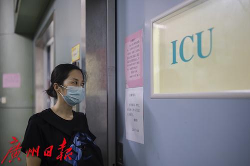 2021年7月31日下午,30岁的蓝女士在广州南方医院重症医学科ICU病房外徘徊。每天下午,医生都会到病房门口来向家属告知患者最新的治疗情况。“我发现这个世界上最难熬的事情就是等待。”蓝女士说,这条走廊她已经太熟悉了,过去的10天,她每天都在这里焦急地踱步,帮母亲缴住院费、筹款。