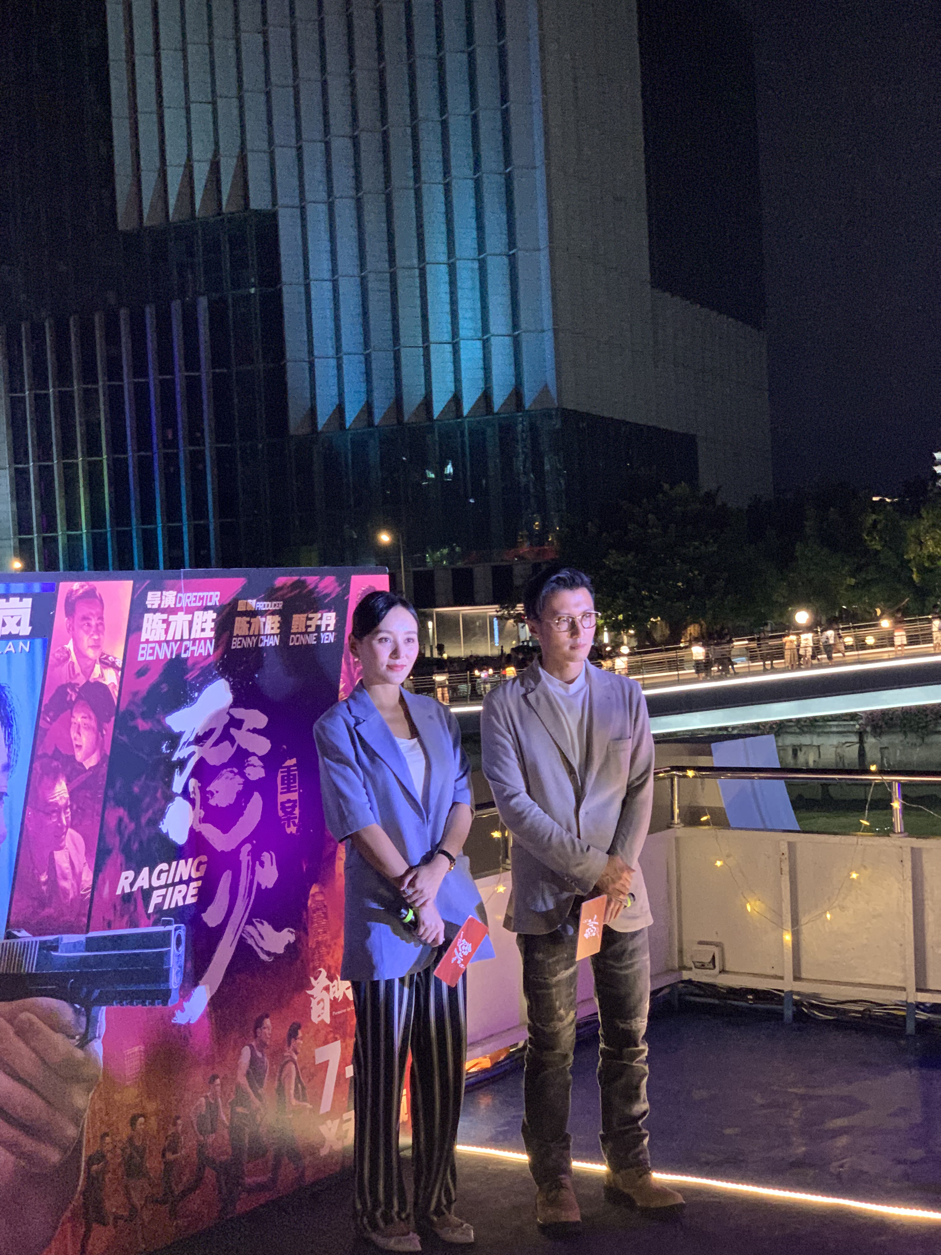8月3日晚,演员谢霆锋、何佩瑜亮相广州《怒火·重案》媒体见面会。当晚,两位主创踏上珠江夜游的游船,一边欣赏广州的美景,一边向记者推介这部最新的动作电影。