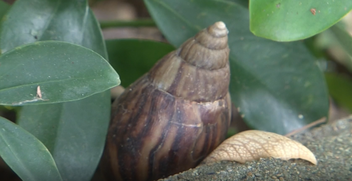 夏季雨水增多,城区不少公园和小区里出现了非洲大蜗牛。