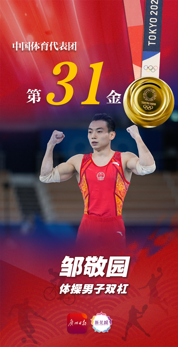 北京时间8月3日下午,在东京奥运会体操男子双杠决赛中,中国选手邹敬园在比赛中拿到了16.233的高分,获得冠军,为中国代表团获得了本届奥运会的第31枚金牌,也是中国体操队在本届奥运会上得到的第二枚金牌。此前已经获得了东京奥运会男子吊环亚军的中国选手尤浩获得第四名。
