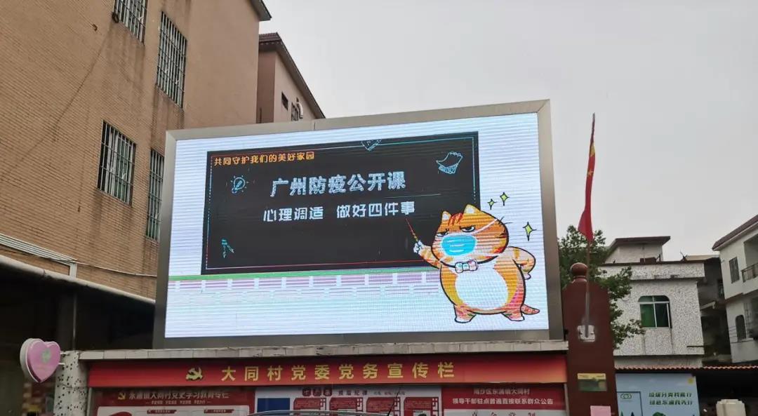 近段时间来,东涌镇有关宣传部门多措并举,利用各种宣传平台加大宣传力度,确保疫情防控宣传全覆盖。如利用设置在东涌广场、镇标入口、濠涌水乡风情街等重点场所的20多个电子屏,滚动播放防控宣传画和宣传视频。