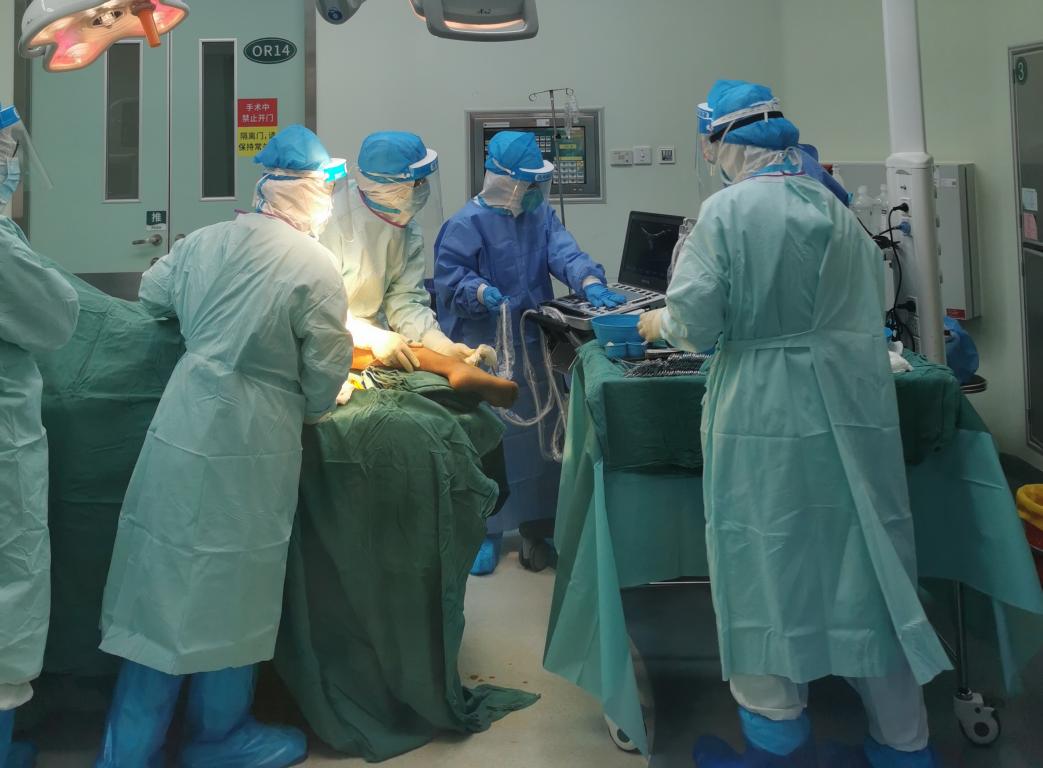 伤情紧急,时不我待。为尽快取出金属异物,避免二次损伤,降低感染风险,庄永青及其团队决定不等核酸检测结果出来了,在向医院疫情防控小组汇报后,立即采用标准三级防护开展手术。