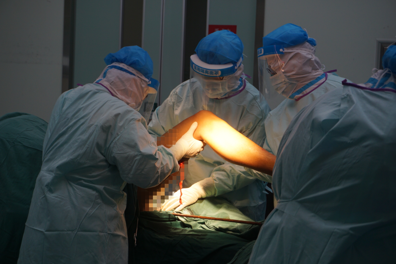 经院方检查,有两根钢筋分别贯穿男子双腿,其中一根从大腿往上贯穿,差点插入大动脉。该院手显微血管外科紧急会诊后,开通绿色通道,在核酸结果未出的情况下,穿着防护服进行紧急手术。手术历经1个多小时,钢筋顺利从男子大腿取出,目前已脱离危险。