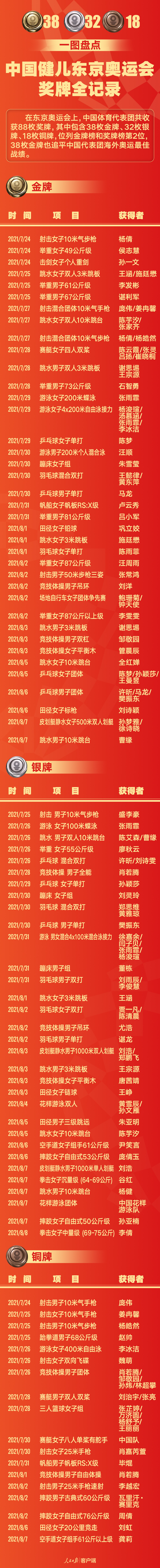 本届东京奥运会,杨倩为中国代表团拿下第一枚金牌。奥运会闭幕之日,李倩为中国队再添一枚银牌,最终中国代表团38金32银18铜收官。中国代表团,平安凯旋!
