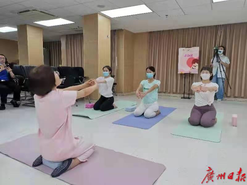 医务人员还教授简单易行的瑜伽体式,可以缓解产后不适、肩颈酸痛,促进乳汁分泌,舒缓乳汁淤积,消除副乳,并达到塑型瘦身的效果。