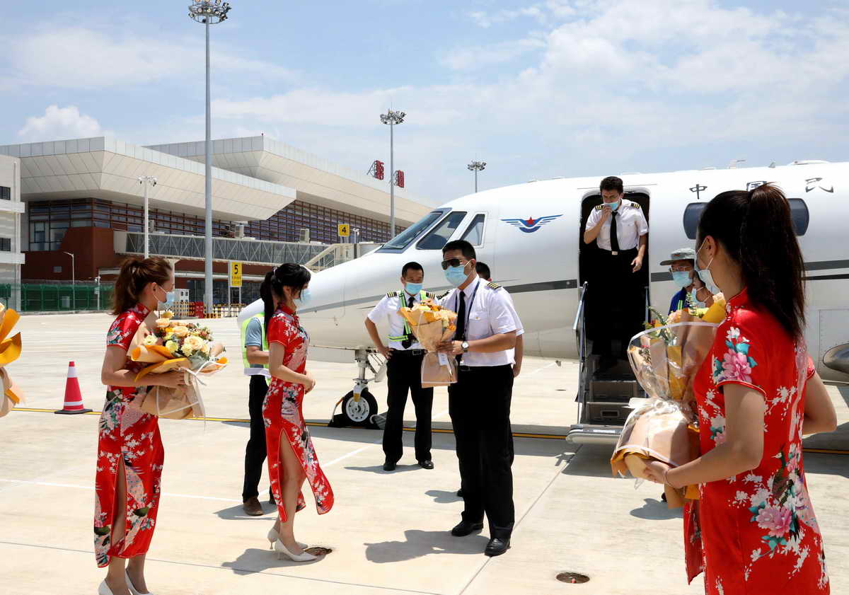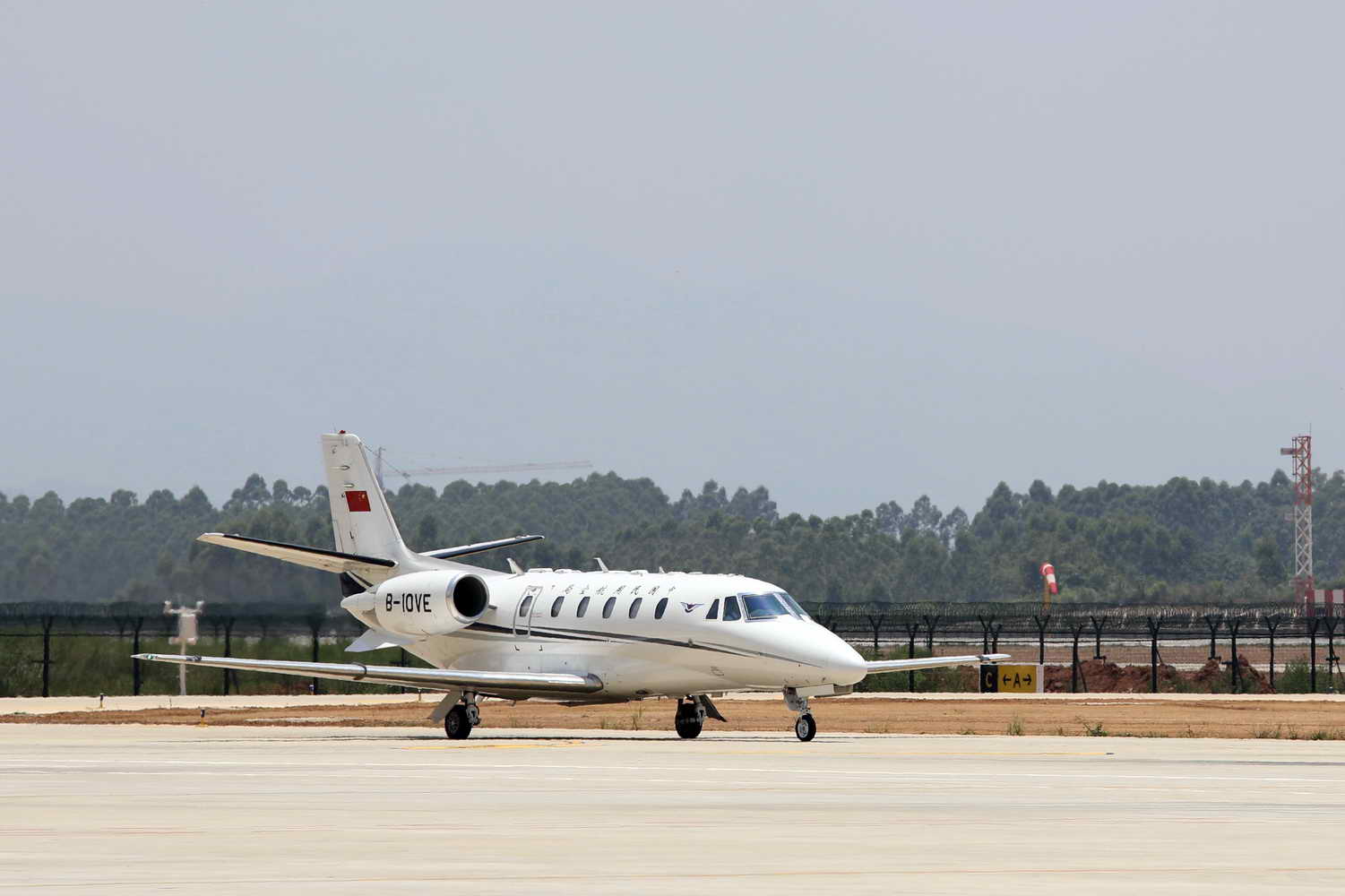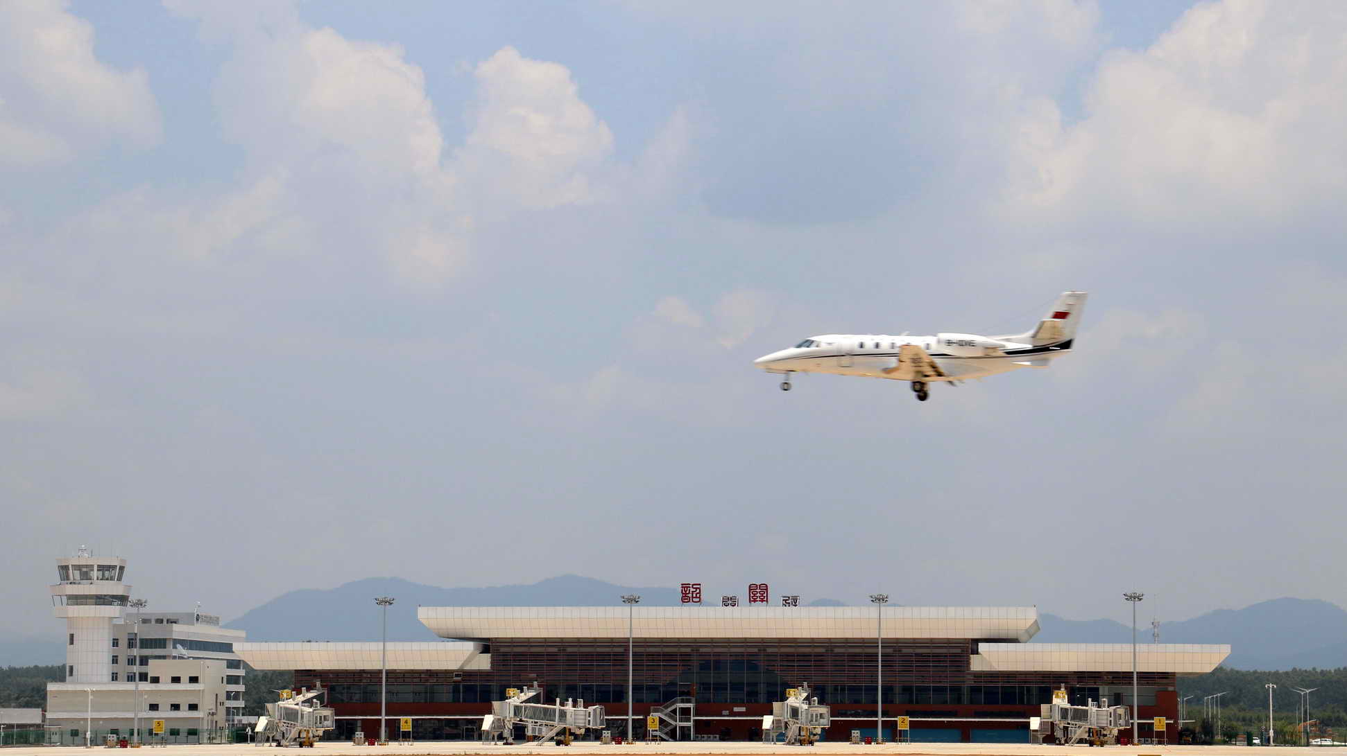 8月8日,韶关丹霞机场建设迎来关键性节点——校飞。12时38分,随着机场指挥塔台发出降落指令,一架C560型专用校验飞机平稳降落在机场跑道上,正式拉开了韶关丹霞机场校验飞行序幕。