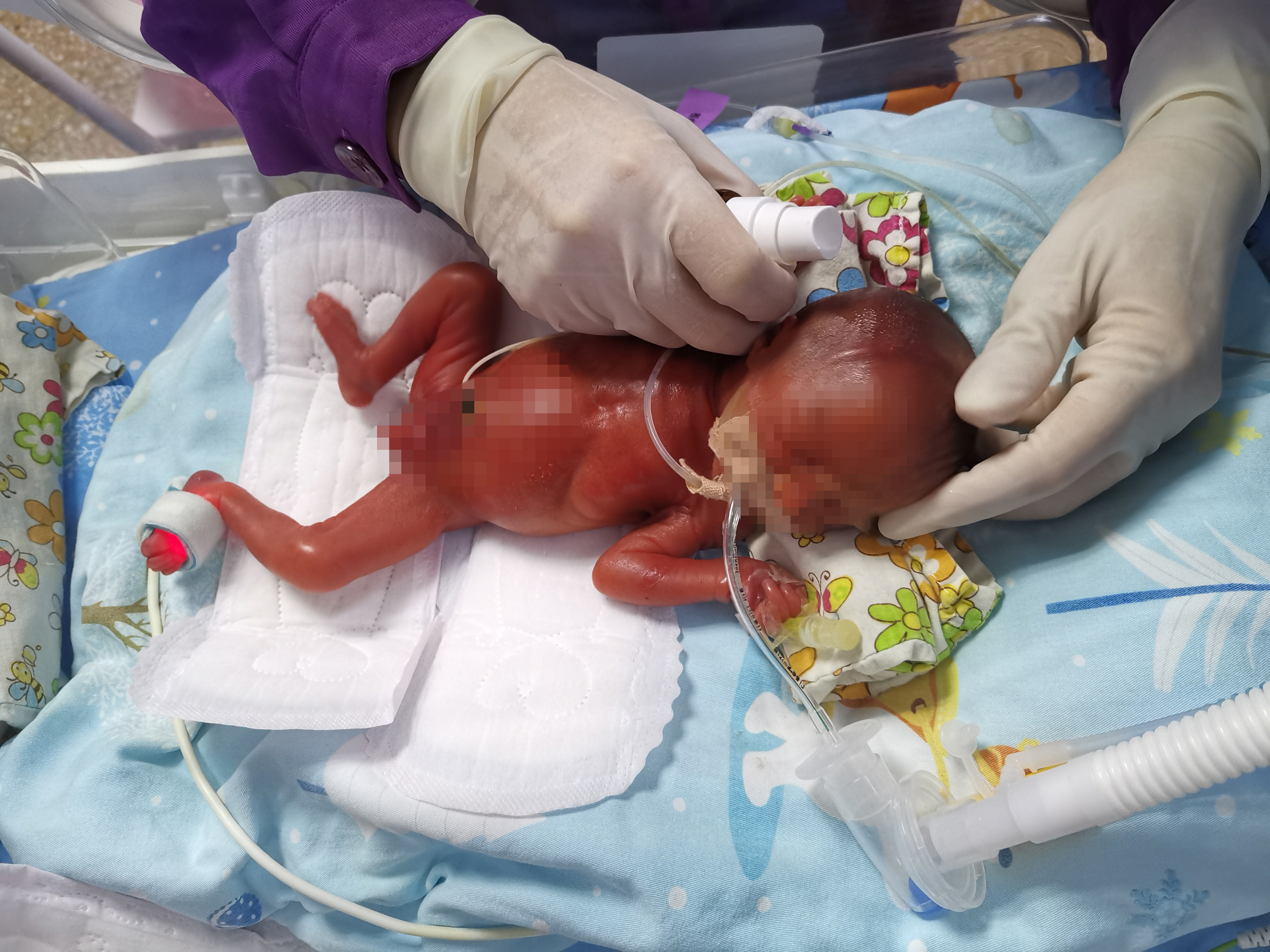 “当时宝宝刚娩出的时候出现了窒息症状。”李剑峰称,来到了人间的凯凯,第一关将面临的是“呼吸关”。由于早产,凯凯的肺发育极其不成熟,出生后即出现了严重的呼吸窘迫,随后,医务人员在其出生后,就迅速进行了气管插管。