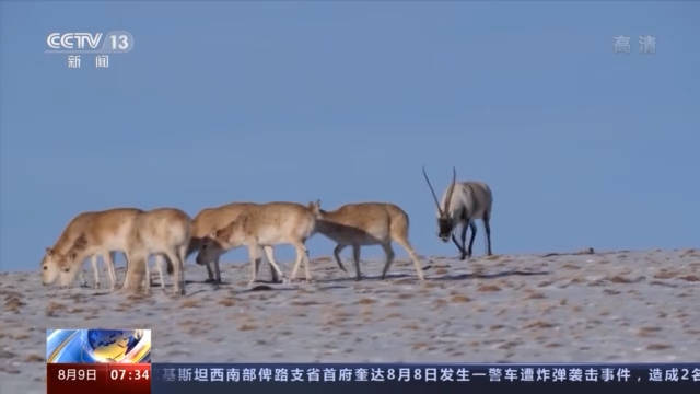 记者 邵海成:我现在所在的地方是三江源国家公园可可西西五道梁保护站,这里的海拔有4600多米,在我身后不远处母藏羚羊正带领出生不久的小藏羚羊,返回栖息地曲麻河地区。