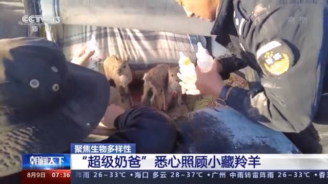 藏羚羊产崽季节,小藏羚羊非常容易遭受意外。这个时候,不及时对小藏羚羊进行施救,就很难野外存活。因此,每年这个季节,三江源国家公园多个保护站的工作人员,都会在野外搜寻施救、接受喂养一批小藏羚,长大野化训练后再放归大自然。照顾小藏羚羊的10多名保护区工作人员,由于全部是男性,被外界称为小藏羚羊的“超级奶爸”。