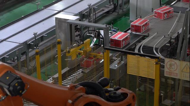 徐义桢介绍,旺仔罐装牛奶线采用全球一流高速液态奶灌装设备,较普通生产线速度快50%,容量控制精准。同时,采用自动仓储系统并通过自动机械臂等现代物流转运手段,使原物料进厂到生产车间生产到成品出货,实现闭环式全方位流线型自动作业。目前,湖南大旺采用高效的利乐包生产线,单线产能为原来的3.25倍,且较普通生产线降低能耗近20%。