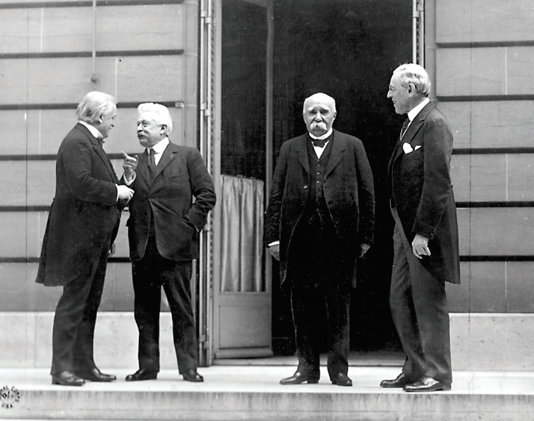 第一次世界大战四巨头:英国首相劳合·乔治、意大利总理维托里奥·奥兰多、法国总理乔治·克列孟梭和美国总统伍德罗·威尔逊