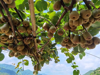 以千亩有机猕猴桃种植基地为例,该镇利用暖田村山多地少,且昼夜温差大、日照充足等特点,在海拔600米左右的高山上发展种植而成。优良的生态条件,加上“施农家肥、山泉水灌溉、物理杀虫”等绿色种植方式,种出来的猕猴桃味甜、汁多、口感好,深受消费者喜爱。去年底通过了农产品安全追溯码认证,今年初又通过了有机转换认证书。目前,除了线上线下销售外,还有批发商主动上门收购,零售价在10--20元一斤,采摘期预计持续到9月中旬。