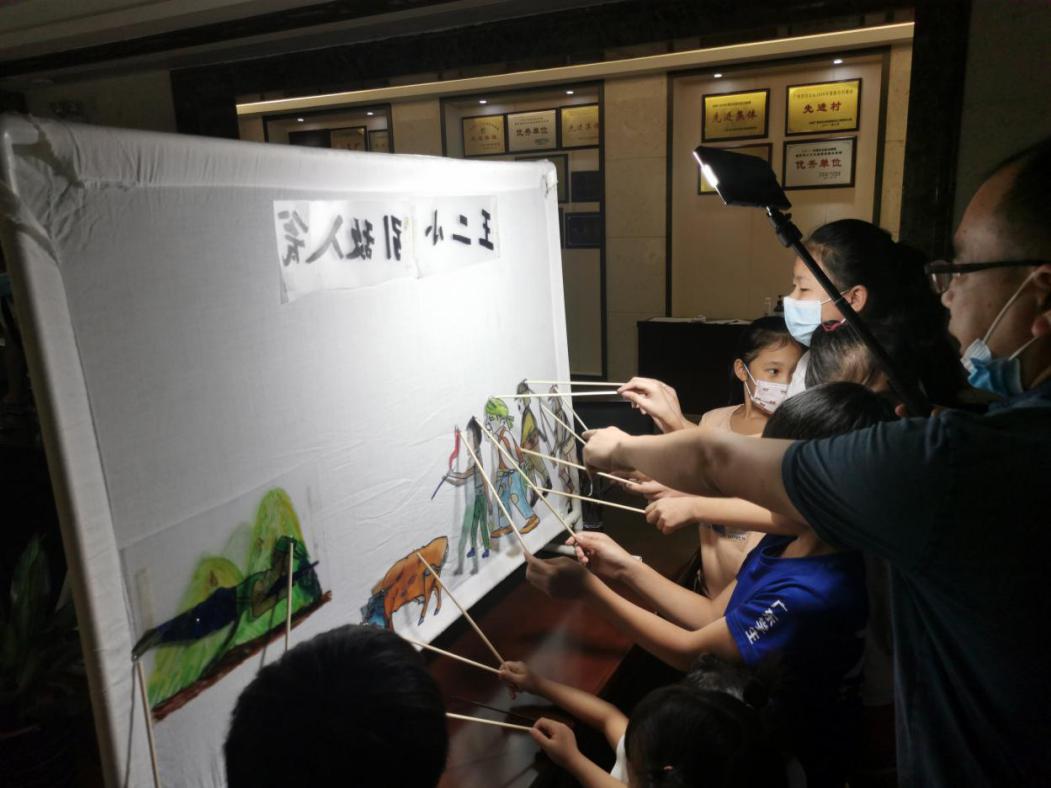 皮影制作环节点亮了“小候鸟”眼中好奇的光。大家迫不及待地开始体验皮影角色制作过程,演绎英雄王二小的故事。孩子们尽情地进行构思、创作,不仅能在皮影戏舞台上饰英雄、当主角,收获表演快乐,还能和家长欢度亲子时光、共同感悟革命前辈的初心使命。
