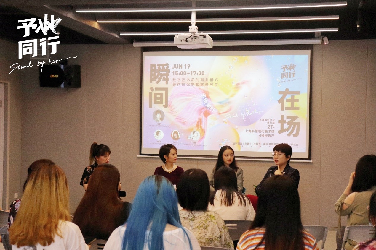 6月19日,《瞬间,在场——予她同行》当代艺术展在上海多伦现代美术馆举办了主题为“数字艺术品的商业模式:著作权保护和前景展望”的专场论坛。论坛邀请到北京市浩天信和律师事务所合伙人刘盈子作为主讲嘉宾,以区块链技术背景下,数字艺术品投资与著作权保护为主题,分享专业、权威的艺术品商业模式和版权保护知识;并邀请了跨界艺术家宋三土和缕薇刺绣工作室创始人张晓星作为特别来宾,分享艺术品的商业模式历程和著作权保护的相关经历;本场论坛由予她同行公益基金发起人梁钰主持。