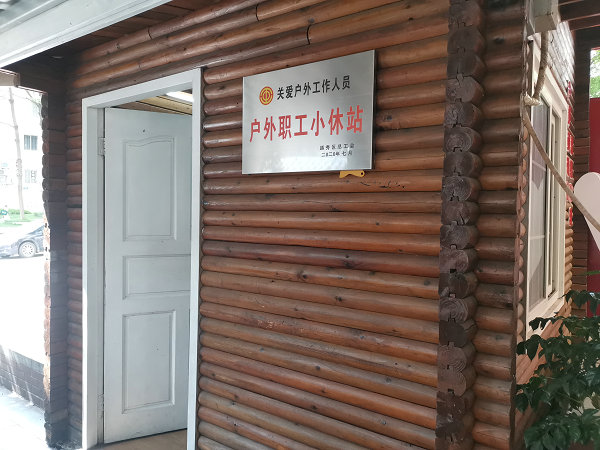 户外职工小休站里都配备了哪些设施?记者走访发现,小休站一般配有桌椅、空调(风扇)、饮水机、纸巾、急救药箱等设施物品。位于东山大街龟岗公交站旁的东山驿站,此前为自行车驿站,由政府委托相关公司运营,终止运营后由东山街道接管,并被辟为街道户外职工小休站。为了打造更加温馨舒适的休憩场所,2020年,越秀区总工会联合东山街道一起对驿站进行整体提升改造。通过在室内加装空调,更换储物柜、沙发、茶几、桌子、窗帘、照明设施,重新铺设地板,重新整饰外立面,清洁顶棚窗户,美化周边绿化带,增添盆栽绿植,小休站的内外环境得到整体提升,既更加符合户外劳动者小休的需要,又与周围环境更能融为一体。