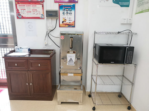 越秀区市容环境卫生保洁所一分部环卫工人驿站配备有饮水机、微波炉等设施。
