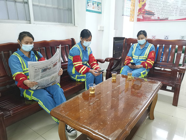 环卫工人覃小姐表示工友们都知道驿站的功能服务,并会在有需要时前往饮水、休息等,“能喝上一口水、吃上一口热饭,对我们来说就是最窝心的。”