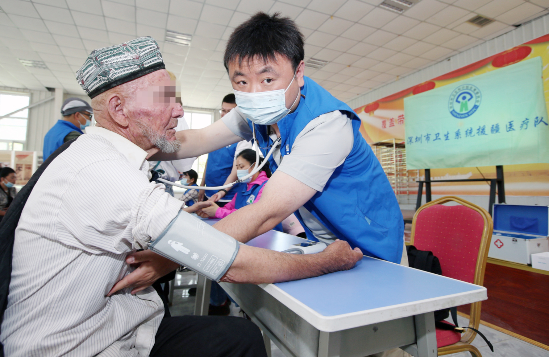 张声(右一)随深圳市援疆医疗队下乡为村民义诊
