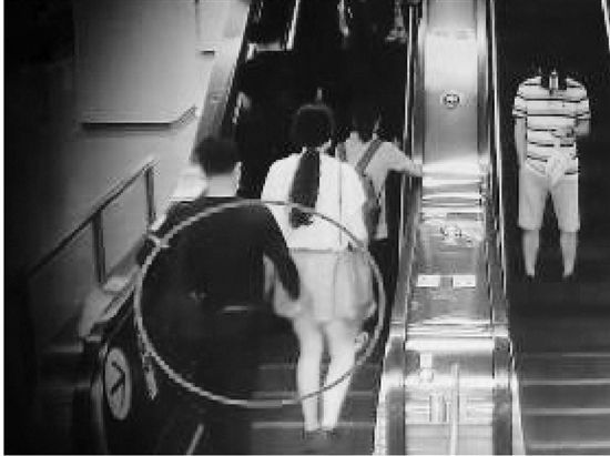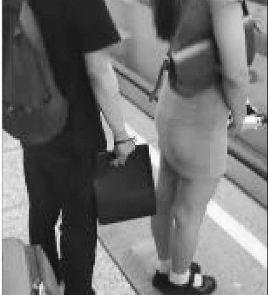 嫌疑人项某达赶紧跟了上去,在站厅出站的上行扶梯上,他紧跟在女子后两个台阶的位置,采用一脚跨上一个台阶,俯下身子的方式,将手机悄悄伸到女子裙底进行偷拍。因紧张,嫌疑人项某达一不小心碰到了女子的脚后跟,该女子立即回头狠狠地瞪了他一眼。