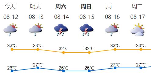 12日深圳有(雷)阵雨,部分时间雨势较大,11日夜间至12日上午出现强降雨的风险高,气温26-33℃;