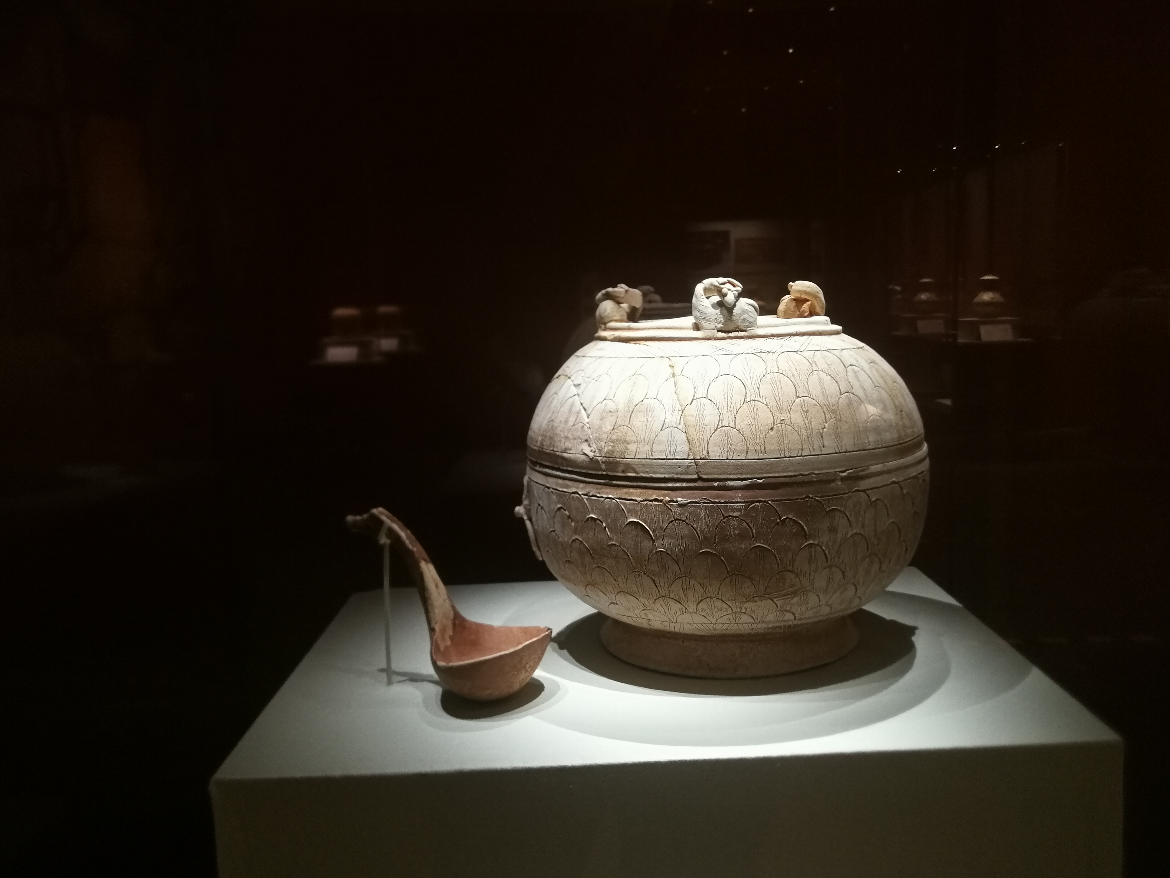 易西兵还特别推荐了汉武帝灭南越之后一段时期内常见的一些随葬明器,包括仓、灶、井、屋、船等,还有陶俑。它们既有汉文化的因素,又充分展现了地域文化的特色。与陕西、河南等地的同类文物对比一下就可以发现,广州的这些东西规模上不算大,但很写实,比如房子里饲养的六畜,比如灶台上的猫,甚至老鼠都有,观察很细致,很生活气息,让我们看到汉代岭南社会的缩影。