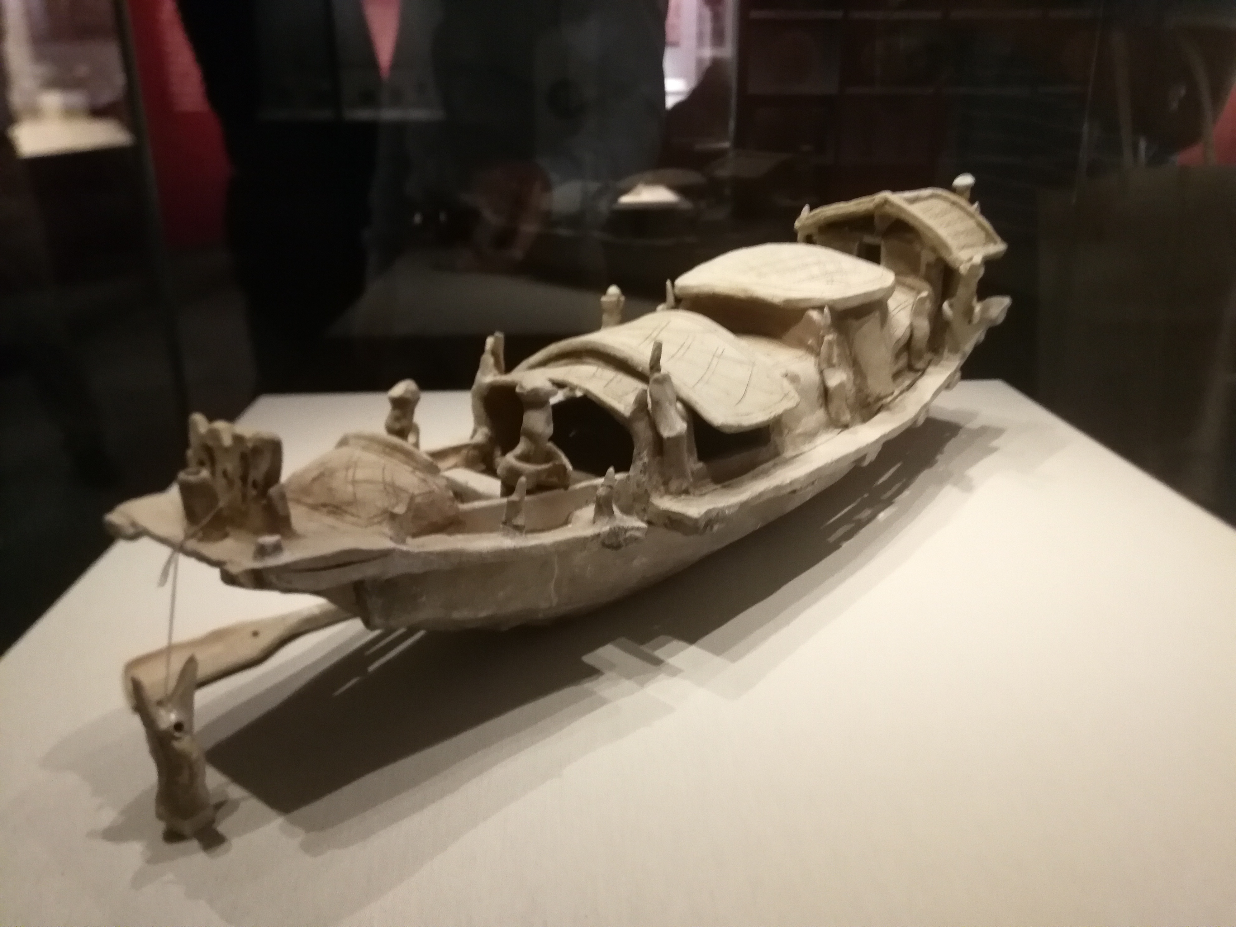 “越人善舟楫”,易西兵说,广州的陶船数量发掘虽然不多,但在全国来看是领先的。广州地区水网密布,船是重要的交通工具。它既说明了当时的岭南地区的地理环境特点,也让我们可以合理推测,其中一部分已经拥有了海上航行的能力,成为了海丝开拓的重要技术工具。1955年在广州沙河顶发掘的东汉陶船,后来入藏了中国历史博物馆,也就是现在的国家博物馆,这次原件也展出了。它“前有锚,后有舵”的这种技术,领先欧洲1000多年。