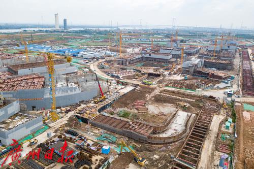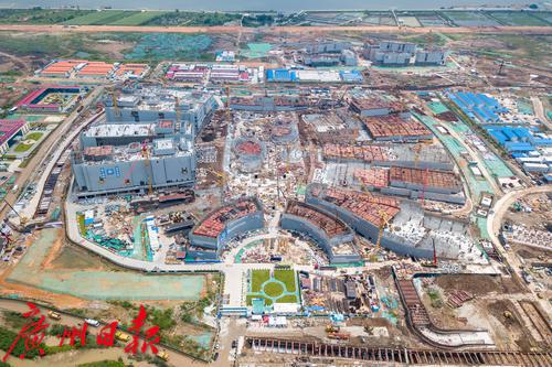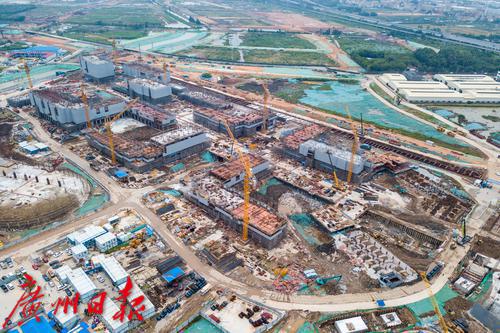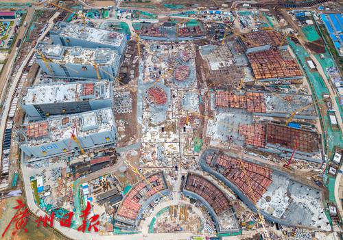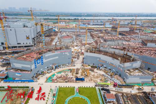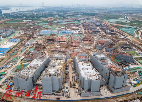 俯瞰港科大(广州)一期工程核心建筑建设工地。