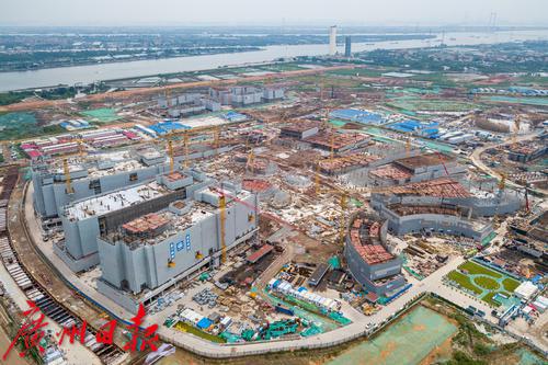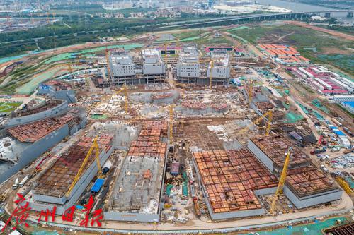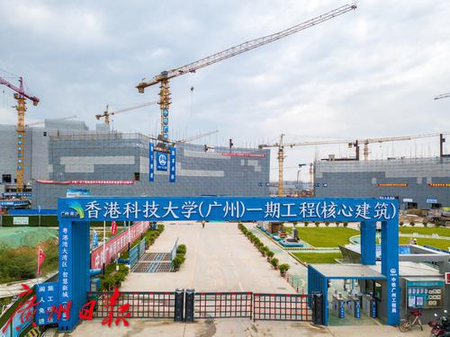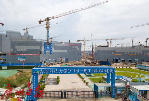 2021年8月,香港科技大学(广州)。香港科技大学(广州)由广州大学与香港科技大学合作办学,规划总用地面积约1669亩,其中一期用地面积约716亩,一期总建筑面积约63.6万平方米。一期总投资估算约为95.85亿元,工程建设投资60.61亿元。总工期17个月,横跨两个春节,平均每月完成投资3.5亿,高峰期每月完成投资7亿。项目预计九月底实现主体结构全面平顶,2022年3月完工,5月移交香港科技大学(广州),9月可达到开学标准。