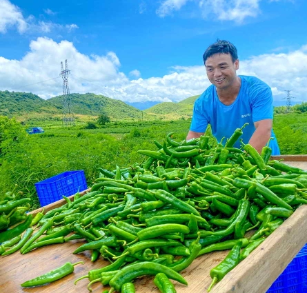该镇农技员邹新华兴高采烈地说:“今年种辣椒收成好,全镇种植了4000亩,每亩产量约6000斤,亩产值6000元,每天都有20多吨优质辣椒销往大湾区!”