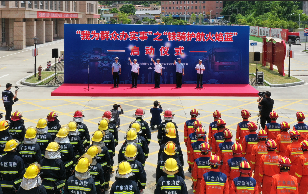 8月13日上午,“铁骑护航火焰蓝”启动仪式在广东省中山市消防救援支队举行。