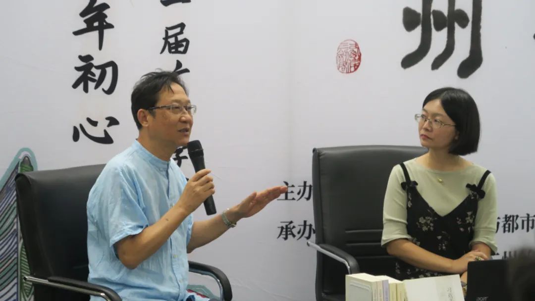 本次讲座主持人、广州都市文学与都市文化研究基地首席专家江冰教授与王焱教授开展了对话。江冰教授认为,现在有些作家把讲故事的传统丢失了,“有的人把一个很浅显的道理讲得云遮雾罩,让人看完以后既无回味,又觉得白写了一篇文章。”他随后提出疑问:为什么中国古人在先秦哲学典籍中善于讲故事,而现在的人不能讲好故事呢?