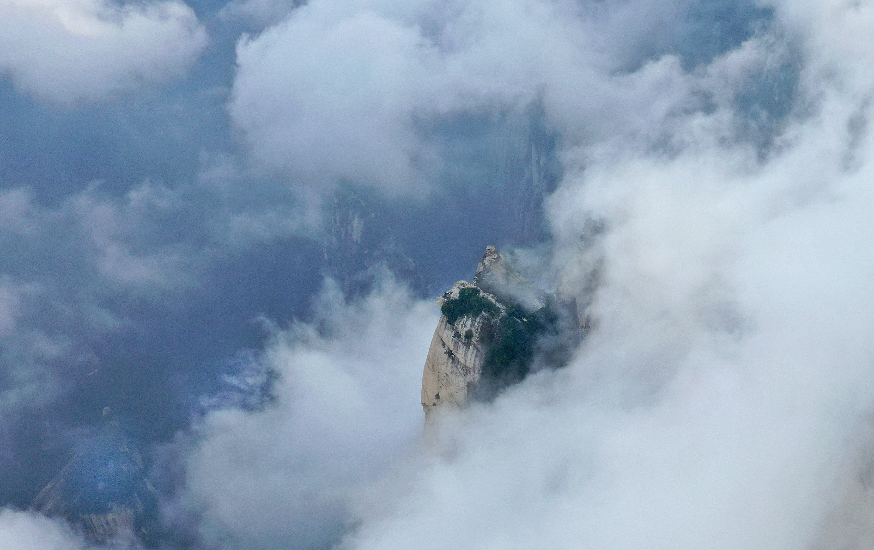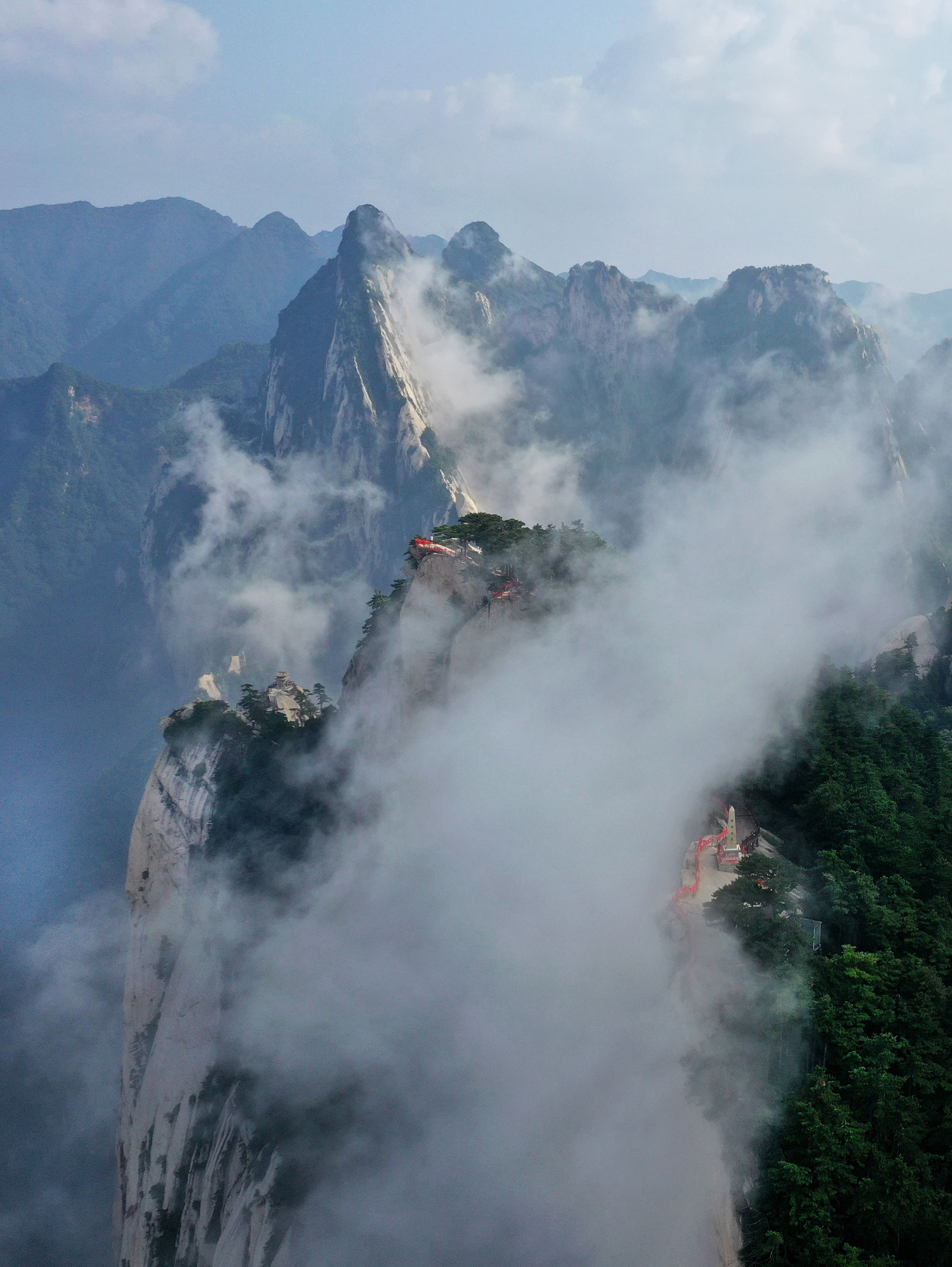 8月14日,奇景幻影的西岳华山东峰一景(无人机照片)。