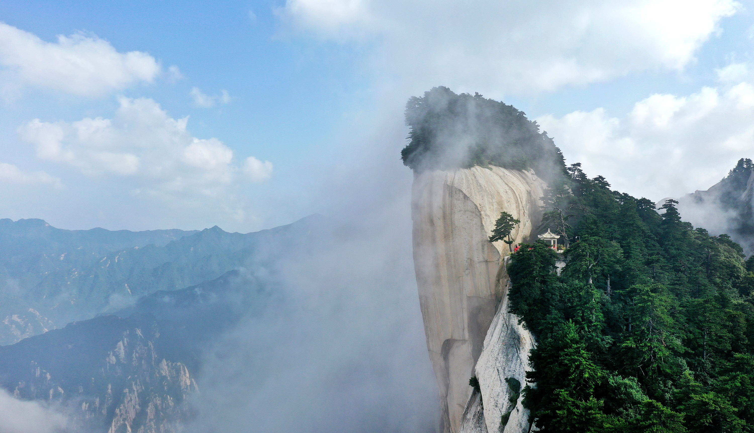 8月14日,西岳华山东峰下棋亭风光(无人机照片)。